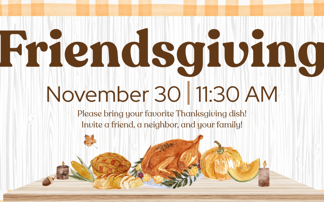Join us for a meal on November 23, right after service, around 11:30 a.m. This special potluck-style gathering is a wonderful time to share your favorite Thanksgiving dish and enjoy a warm meal together.