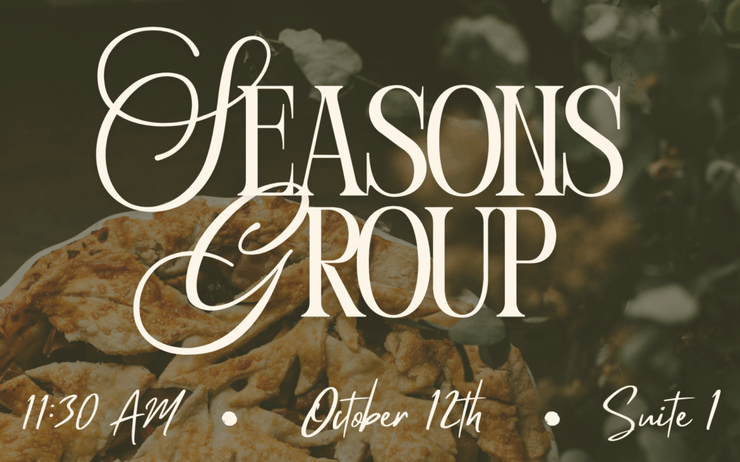 For those 50 and older, the Seasons Group invites you to join us on Sunday, October 12th, after service in Suite 1 as we return for a time of fellowship, a shared meal, and a special fall activity.